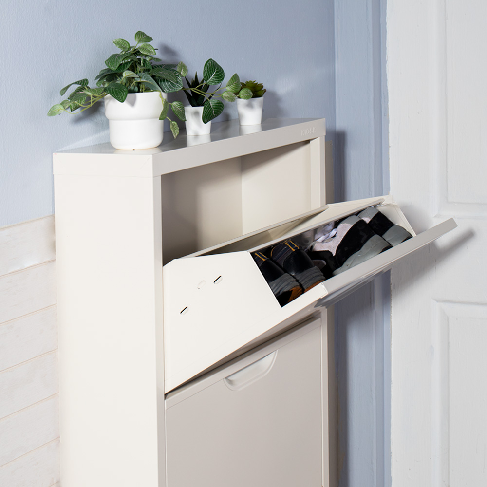 For people in the home decoration, Try to creating a shoe storage corner with a shoe cabinet. with additional functions such as seats or storage. It could be solution for user which can be used as a storage for shoes, as a seat, or as a storage for miscellaneous items. Also meets the needs of beautiful design with many materials to choose according to preference. There are also sizes to choose to be suitable to the space in your home.