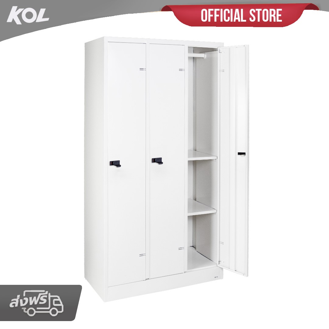 KOL 3-Door Locker Cabinet with 1 Rod, 2 Shelves, and combination Locks