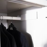 Full height sliding glass door wardrobe with 1 rod, 2 adjustable shelves and keylock.