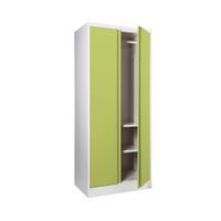 Open door wardrobe with 1 hanging rod and 2 adjustable shelves.
