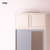 Overhead open door cabinet. "All KIOSK Furniture products are made from rust-proofed and powder-coated steel. The structure comes with a 6-year warranty. (It is strictly forbidden to remove the warranty sticker. If the sticker is removed, the warranty will be immediately voided.)"