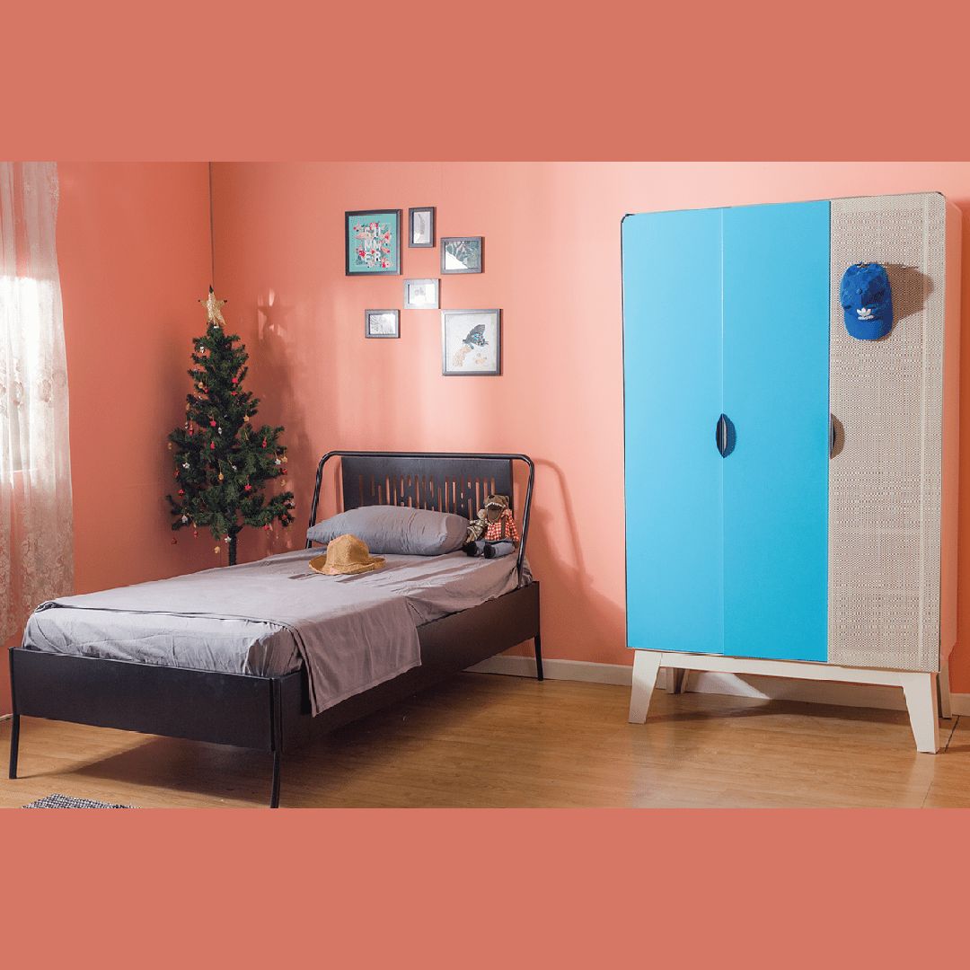 Wardrobe -3 doors 2 open steel doors and 1 slotted steel door (for airflow) Inside left compartment, 1 cloth rod and 1 small cabinet Inside right compartment, 1 cloth rod and 2 shelves. Free! 3 removable knobs for hanging shirt, hat or neckties. "All KIOSK Furniture products are made from rust-proofed and powder-coated steel. The structure comes with a 6-year warranty. (It is strictly forbidden to remove the warranty sticker. If the sticker is removed, the warranty will be immediately voided.)"