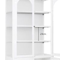 Sleek model tall display cabinet with 4 shelves and 1 bottom storage compartment. Features 3-sided curved clear glass, ideal for stylish storage and display. 20cm. leg height.